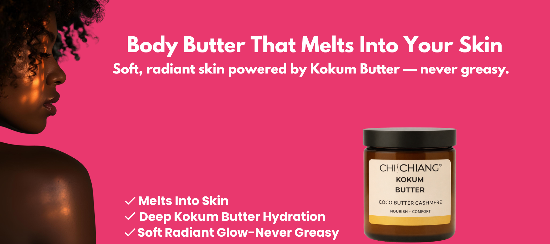 Chi & Chiang® creates intentional, performance-driven body care designed for women who want products that work as beautifully as they feel. Our formulas focus on thoughtful ingredients and skin-first results, like our fast-absorbing kokum body butter that delivers deep moisture without the greasy feel.